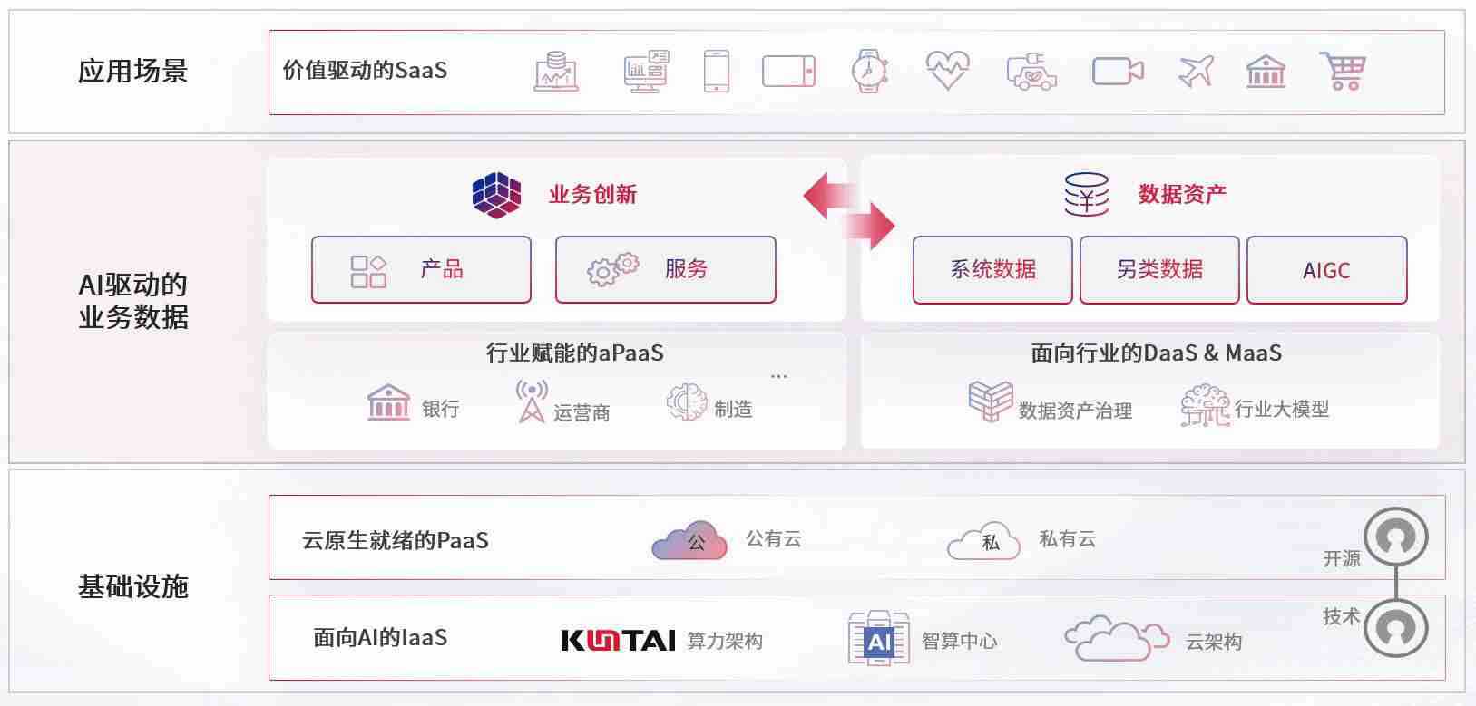 数字时代,,,围绕企业数字化转型的关键要素,,41660全球赢家的信心数码开创性的提出数云融合战略和技术体系框架,,,,着力在云原生、、、、数字原生、、AI原生和信创产业上架构产品和服务能力,,,为处在不同数字化转型阶段的快消零售、、汽车、、、、金融、、、、医疗、、、、政企、、、教育、、、、运营商等行业客户提供泛在的敏捷IT能力和融合的数据驱动能力,,构建跨界融合创新的数字业务场景和新业务模式,,助力企业级客户建立面向未来的核心能力和竞争优势,,全面推动社会的数字化、、、、智能化转型升级。。