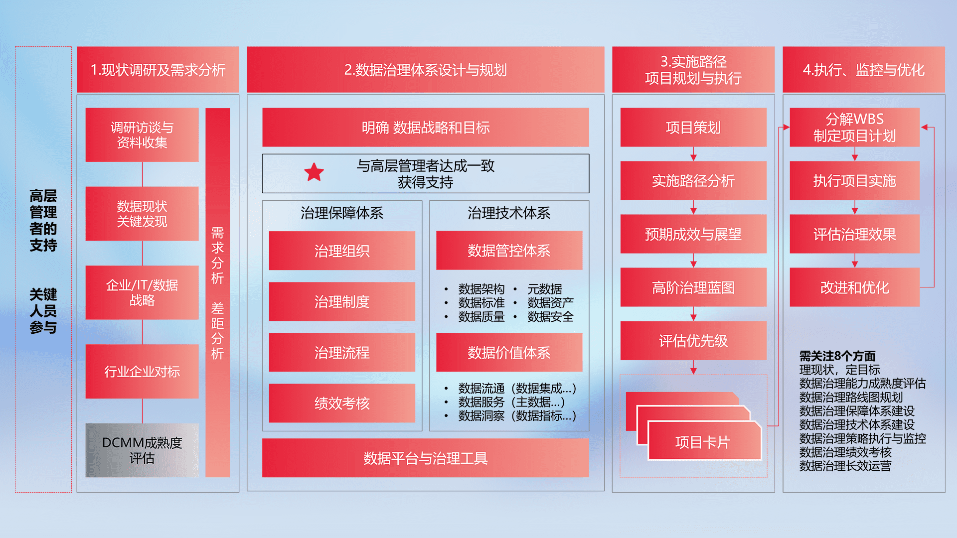制定并执行统一的数据标准,,,,规范数据定义和格式,,,,消除冗余和不一致性,,实现跨部门和跨系统的数据一致性,,为企业提供标准化的数据基础。。。。