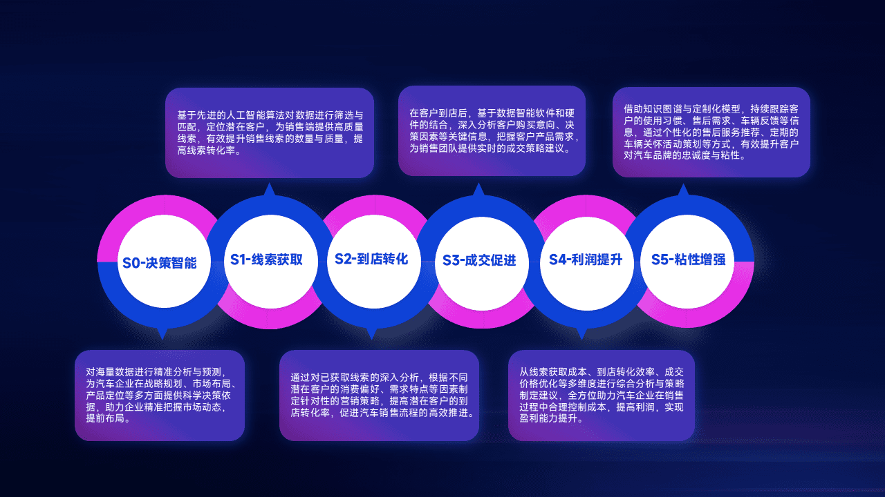 通过拓宽潜在客户来源、、、优化线索分配并提高到店转化率,,,,以增强销售效率。。同时,,,,利用线索数据不断优化分析模型,,,,有效提升转化率,,扩大营销影响力。。。
